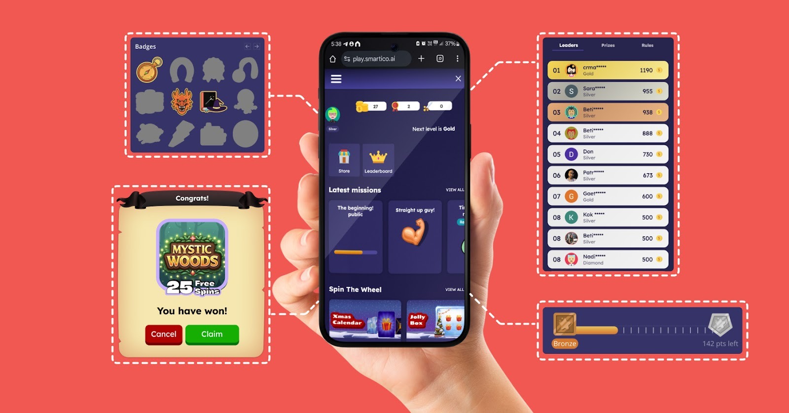 - Leaderboards – Set daily, weekly, and monthly prizes and watch your user engagement skyrocket.