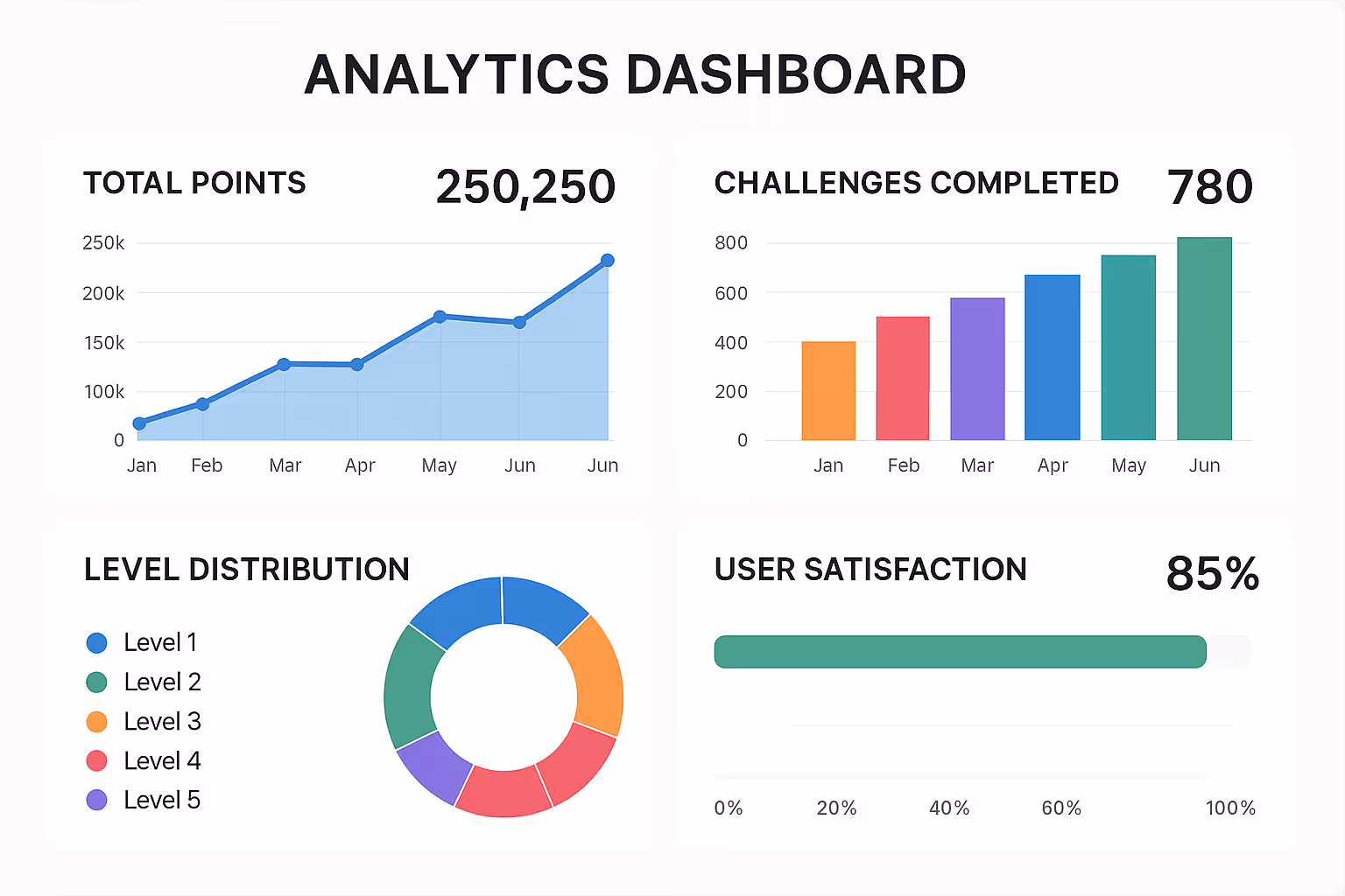 Track metrics that directly relate to your business objectives. Revenue per user, lifetime value, and churn rates provide clearer business impact than vanity metrics like total points awarded.