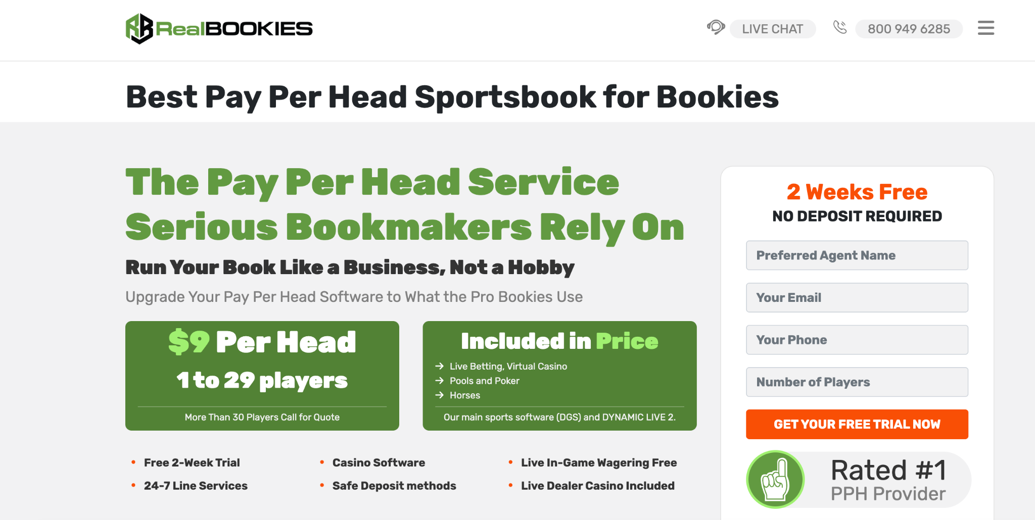 RealBookies is a leading pay-per-head (PPH) sportsbook software provider, offering a cost-effective, feature-rich solution tailored for independent bookmakers, offshore operators, and U.S.-facing agents. For a competitive weekly fee per active player (typically around $10 or lower depending on volume), operators gain access to a full-service platform including a comprehensive sportsbook, casino, racebook, and live dealer games, without the need to build or maintain their own infrastructure.