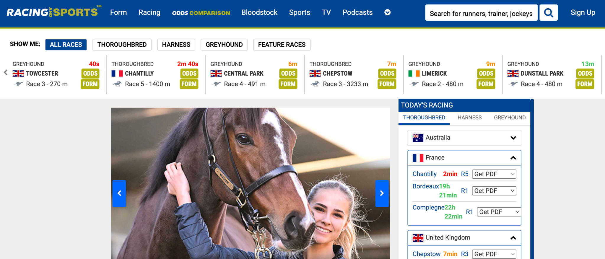 Racing and Sports (often associated with premium horse and greyhound racing data solutions, including providers like Podium or similar specialized feeds) delivers superior real-time data feeds and content for horse racing, greyhound racing, and related betting verticals. Their offerings include racecards, live odds, results, statistics, historical data, and editorial insights with high accuracy and low latency.