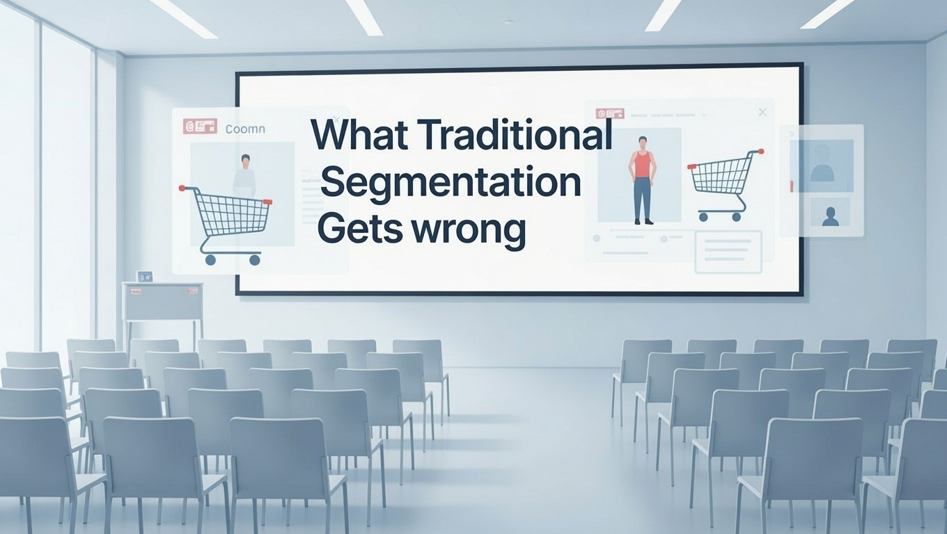 La segmentación tradicional divide la base de clientes en grupos según criterios básicos como la edad, el sexo, la ubicación y los ingresos. Es el equivalente en marketing a poner a todos los que usan zapatos de talla 10 en la misma habitación y asumir que todos querrán el mismo estilo.