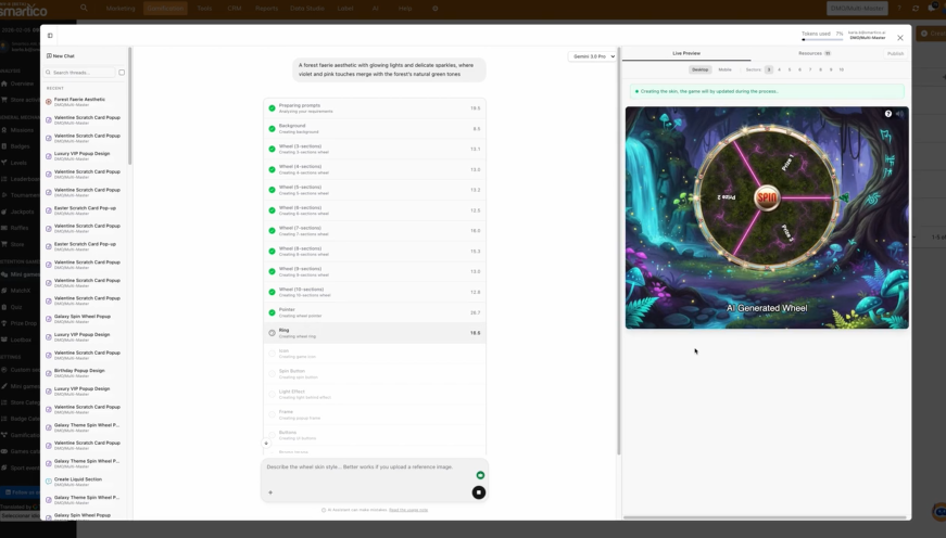 Acabamos de lançar o Criador de design de rodas Agente de inteligência artificial, e ele faz exatamente o que o nome sugere: cria designs personalizados para seus minijogos “Spin the Wheel” em minutos.