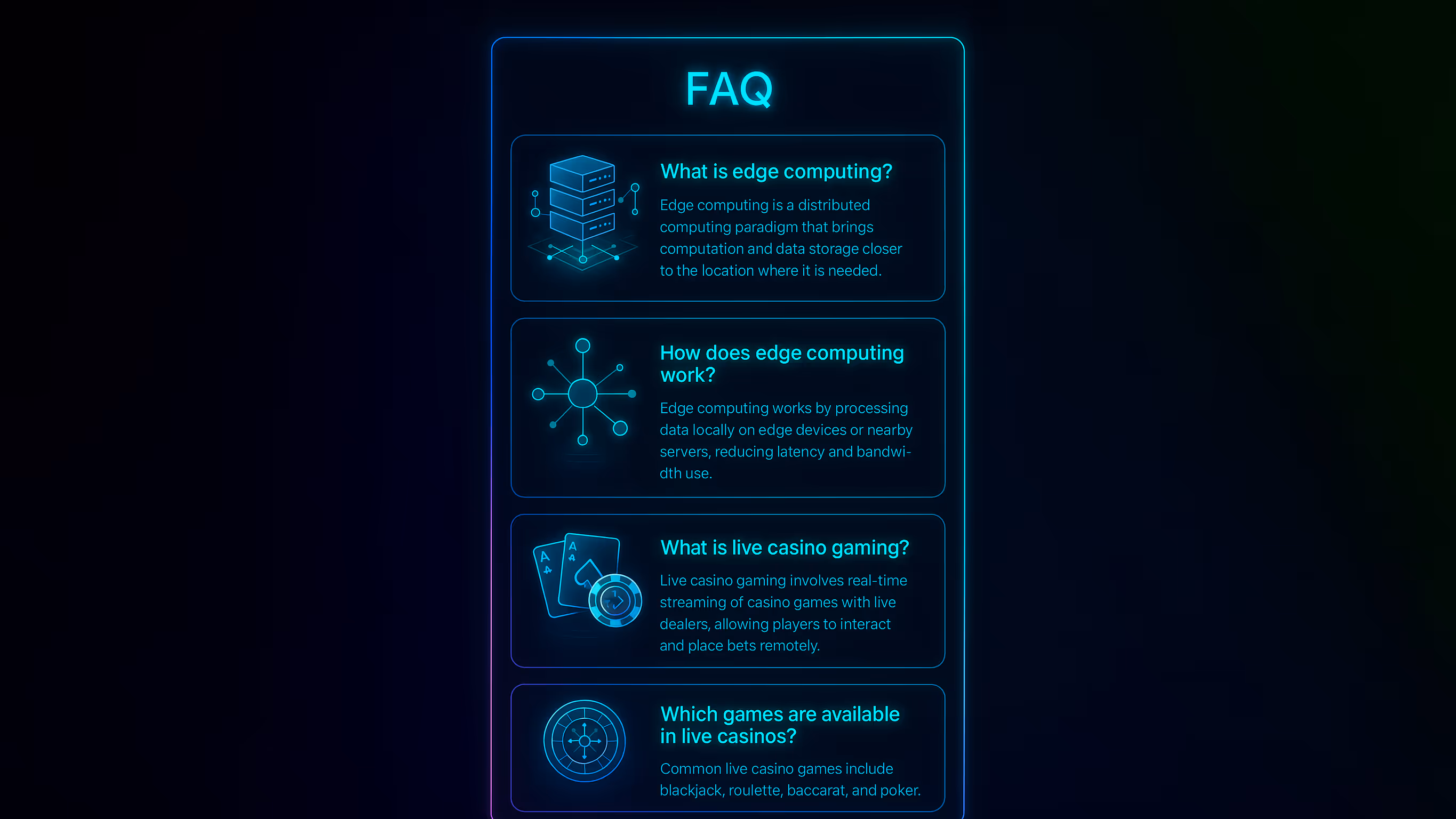 Технология основана на распределении вычислительных мощностей между несколькими периферийными точками, а не на централизации всего в нескольких крупных центрах обработки данных. Когда игрок из Лондона играет в живую рулетку, его данные обрабатываются на периферийном сервере в Лондоне или его окрестностях, а не на предприятии в другой стране. Такая близость устраняет задержки, которые долгое время мешали игрокам и операторам.