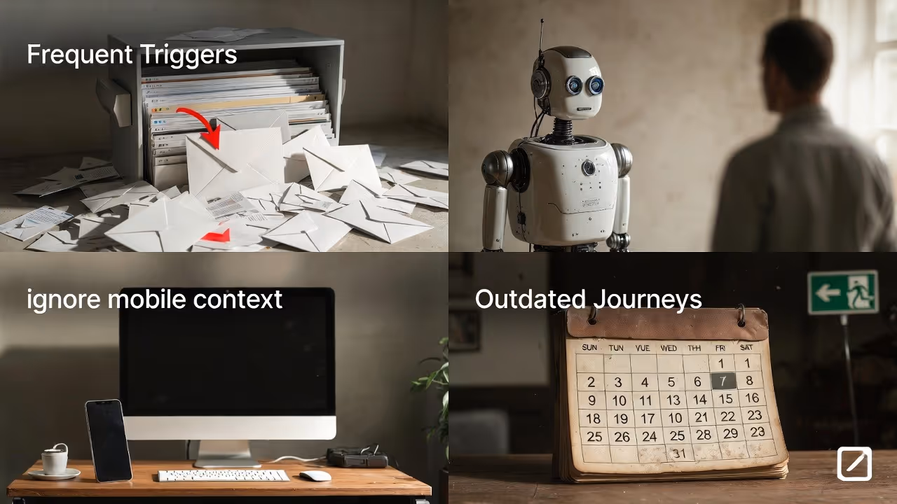 They trigger too frequently. A player shouldn't receive five automated messages in an hour just because they triggered multiple events. Set frequency caps and prioritize which journeys take precedence.