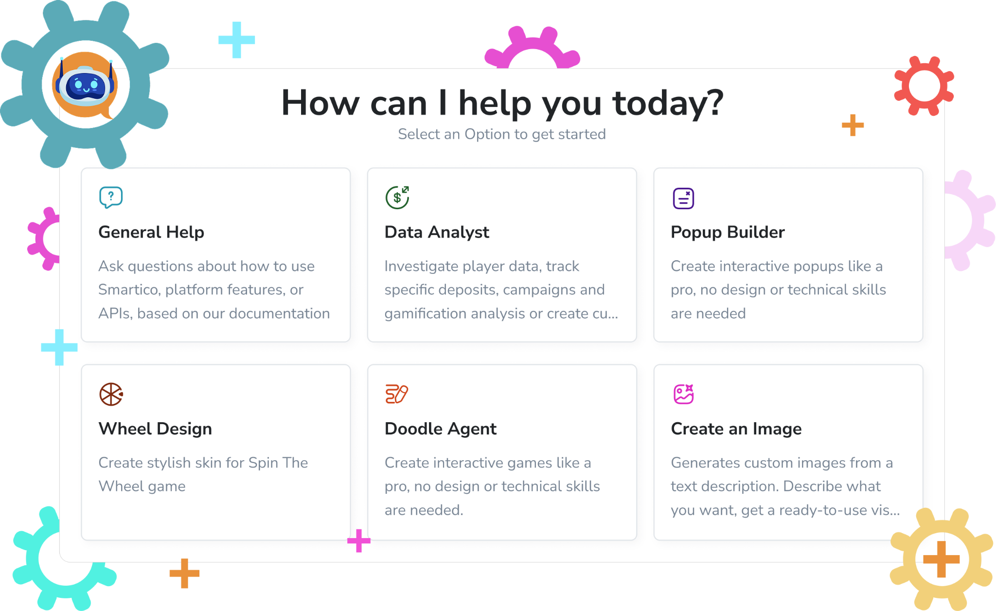 These clever little helpers live right inside Smartico and make life ridiculously easier for operators. Need a custom tournament built in minutes? Done. Want eye-catching wheels, pop-ups, or loyalty missions that perfectly match your brand? Our AI Agents handle it instantly. They’re fast, fun, and specially built for busy CRM teams who want results without the headache.